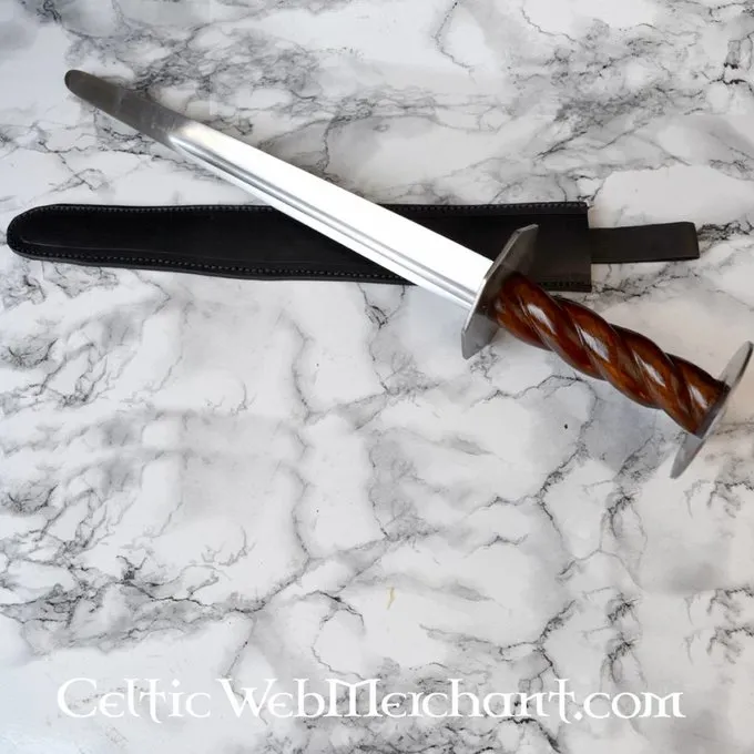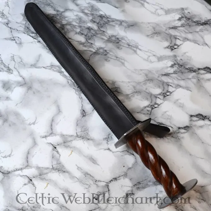 Dieser Dolch ist eine Nachbildung eines typischen 14. Jahrhundert Dolch. Es wurde von vielen Menschen getragen, von Kaufmann Ritter. Es war vor allem für die Selbstverteidigung verwendet, aber es könnte auch in der Schlacht gezogen werden. Dieser Dolch ist komplett handgefertigt und geeignet für Reenactment Schlachten. Seine Länge beträgt 42 cm und hat eine Klingenlänge von 30 cm.