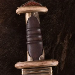 Dieses Wikingerschwert ist eine Replik eines 10. Jahrhundert nordischen Original. Es ist ein Petersen Typ S und das Original ist heute Teil der Sammlung des Nationalmuseums in Kopenhagen. Das Original wird durch das Franken Schwert Produzenten + Ulfberht + gemacht. Ein ähnlicher Artikel wurde in Chertsey, England ausgegraben. Dieses Schwert wird mit einem hölzernen Scheide mit Leder umwickelt geliefert. Die Scheide hat eine Gürtelschlaufe und eine Scheide Spitze