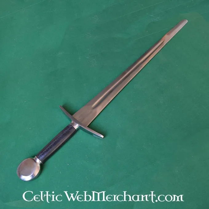 Produktdetails: Länge: 97 cm / Klingenlänge: 75,5 cm / Grifflänge: 21,5 cm / Klingen bei Parierstange: 5,5 cm / Gewicht: 1650 g / Stahltyp: EN45 Federstahl, Härte 48 HRC / Schneide: Blunt (3 mm kampfbereit) / Tang-Konstruktion: Voll Tang-Konstruktion / Kn