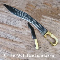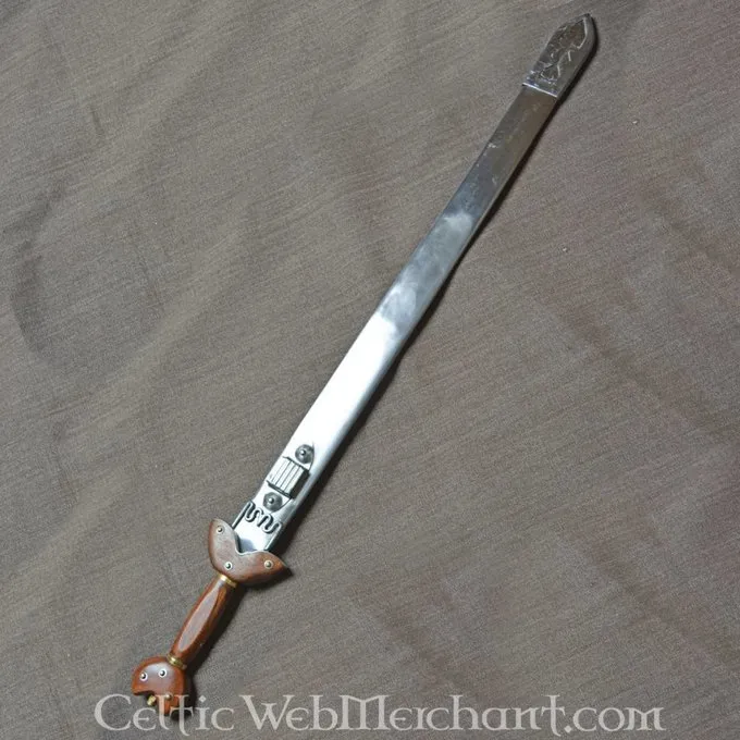 Der Griff ist aus Holz. Das Schwert wird mit einer eisernen Scheide geliefert, die mit Ornamenten im Latène-Stil verziert ist.