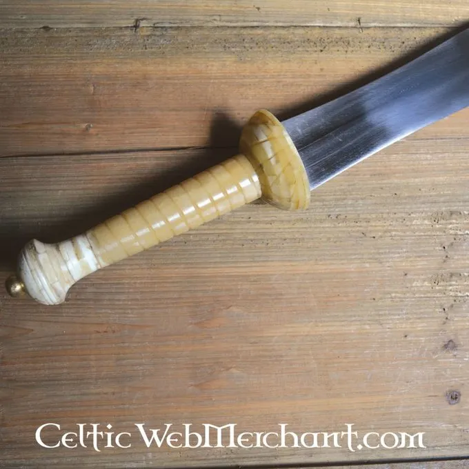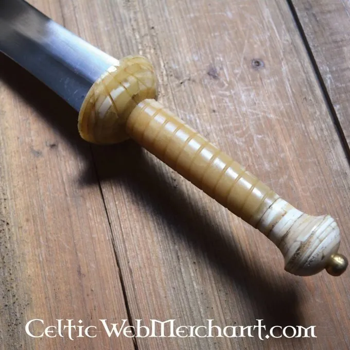 Diese Gladiator Dolch ist 49 cm lang und besteht aus Kohlenstoffstahl. Der Griff ist aus Knochen