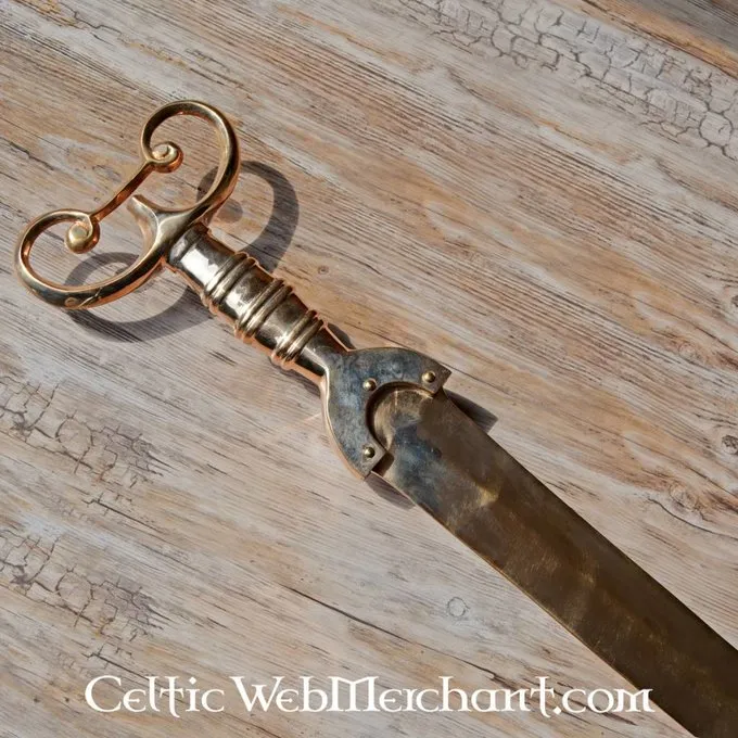 Produktdetails: Länge: 95 cm / Gewicht: 2800 g / Stahltyp: Bronze / Schneide: Semi-Schärf / Tang-Konstruktion: Voll Tang-Konstruktion inclusief Knauf / Griffwicklung: Bronze / Auf der grundlage Eines historic Original: Ja /