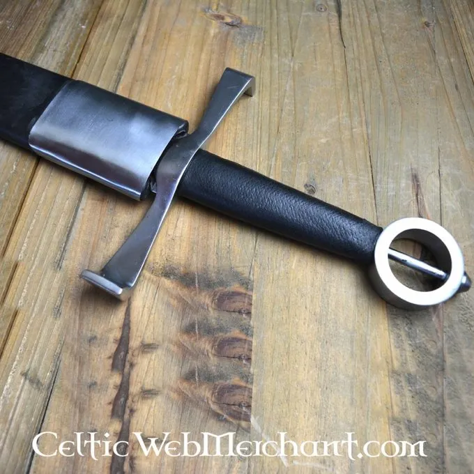 Produktdetails: Länge: 105 cm / Stahltyp: EN45 Federstahl, Härte 48-50 HRC / Schneide: Semi-Schärf / Tang-Konstruktion: Voll Tang-Konstruktion / Knauf: Screwed / Griffwicklung: Holz, Leder / Auf der Grundlage eines historischen Originals : Ja /