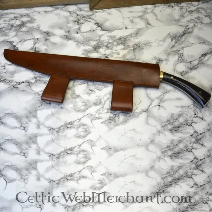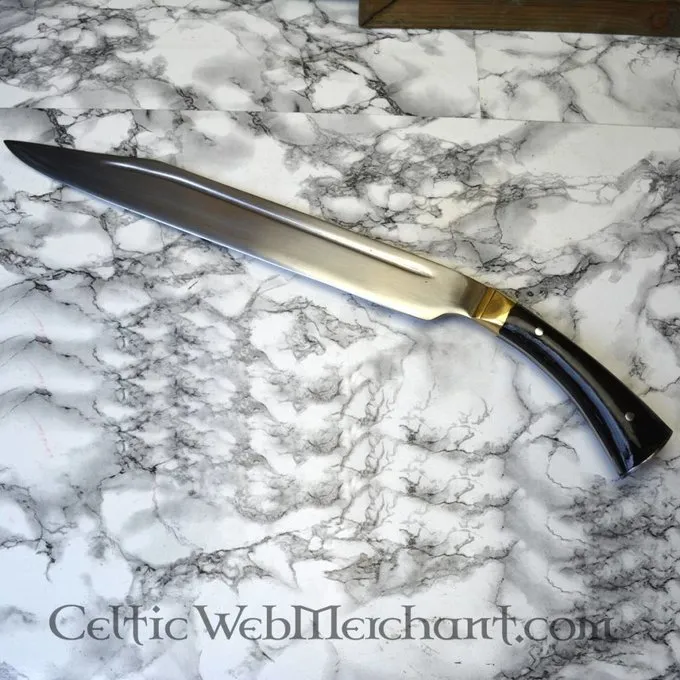 Das Original dieses Seax wurde in England und stammt aus dem 9. Jahrhundert gefunden. Der Griff ist aus massivem Horn und ist mit der Klinge geschraubt. Die Klinge hat eine Hohlkehle. Die Sax hat eine Gesamtlänge von 60 cm, es hat eine Klinge mit einer Länge von 44 cm und einer max. Breite von 5,5 cm. Die scharfe Schneide beträgt 1 mm. Es wiegt ca.. 1,35 kg. Es wird mit einer Scheide geliefert.