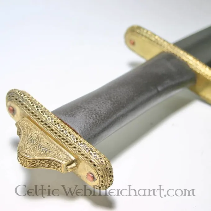 Die beiden Parierstangen und die Knauf sind aus gehärtetem Messing. Die Klinge hat eine doppelte Schneid Schnitte und ist aus Kohlenstoffstahl.