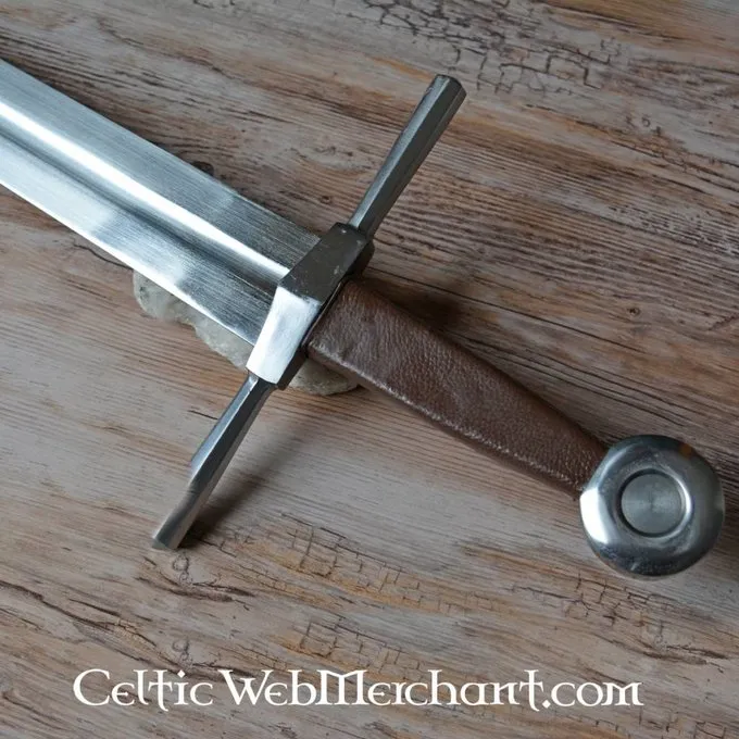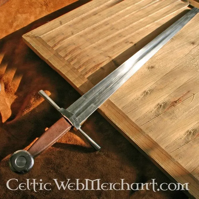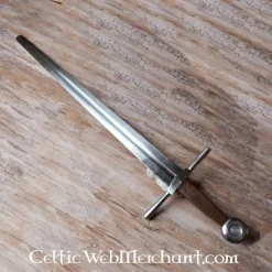 Produktdetails: Länge: 44,5 cm / Klingenlänge: 30 cm / Grifflänge: 14,5 cm / Klingen bei Parierstange: 3,8 cm / Stahltyp: EN45 Kohlenstoffstahl Härte 48 HRC. / Schneide: halb scharf / Tang-Konstruktion: Voll Tang-Konstruktion / Knauf: geschraubt / Griff: