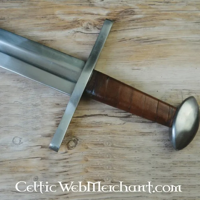 Diese Art von Schwert wurde von den Wikingern um das 10.-11. Jahrhundert verwendet. Das Modell (Oakeshott Typ X) ist ursprünglich ein fränkischer Schwerttyp, der bis weit ins 13. Jahrhundert populär blieb. Dieses Schwert wurde von den späten Wikingern während der normannischen Eroberungen Englands und während der ersten Kreuzzüge verwendet. Dieses Schwert ist stumpf und hat eine Klinge aus EN45 Federstahl. Es ist angelassen und hat eine Härte von ca. 48-50 HRC.