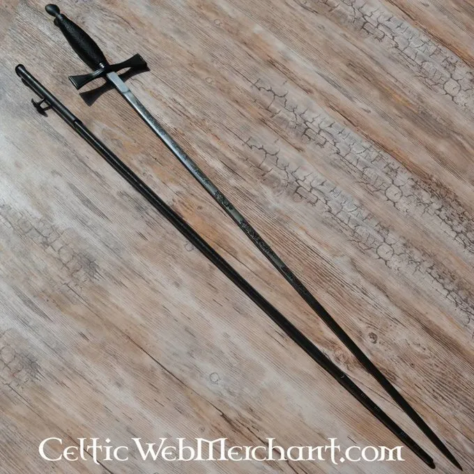 ähnliche zeremonielle Schwerter sind zum Beispiel Freimaurer und Tempelritter Lügen in dem heutigen Tag verwendet. Der Griff mit schwarzem Stahldraht bedeckt ist, die Knauf und guard ist pulverbeschichtet.