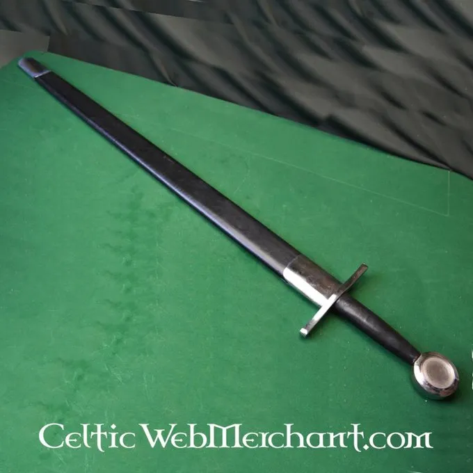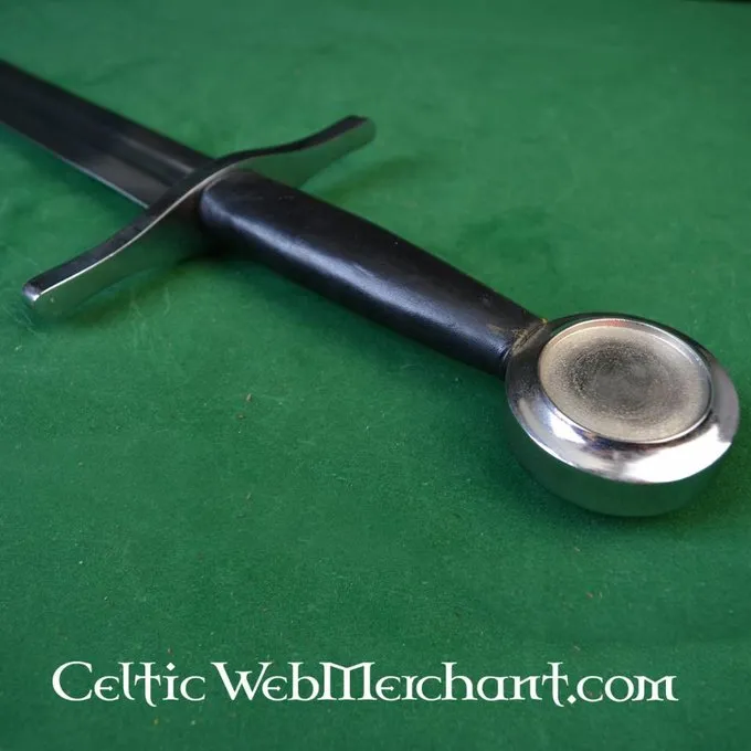 Dies ist eine Rekonstruktion eines mittelalterlichen Schwert mit einer typischen scheibenförmigen Knauf. Es ist 102 cm lang, mit einer Klinge von 83 cm lang und max. 44 mm breit. Die Klinge aus Kohlenstoffstahl hergestellt ist, sind die Knauf und Schutz aus Stahl. Das Schwert wiegt 1,3 kg und ist mit Scheide geliefert.