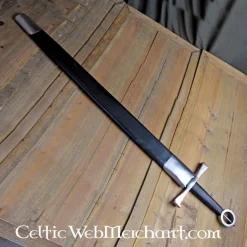 Dieses Schwert basiert auf mehreren mittelalterlichen Originalen. Dieses einhändige Schwert wurde speziell für Hema, historische europäische Kampfkünste, entwickelt. Darüber hinaus eignet sich dieses Schwert für Nachstellungsschlachten. Der Ledergriff dieses Schwertes ist besonders breit für einen besseren Griff mit Handschuh und Hema -Handschuhen. Die Spitze hat eine zusätzliche Verdickung für mehr Sicherheit. Dieses Schwert hat eine Klinge mit einer mittleren Flexibilität und wurde auf einen Druck von 10 bis 11 kg getestet. Dieser Druck wird bei den meisten HEMA -Turnieren als sicher angesehen.