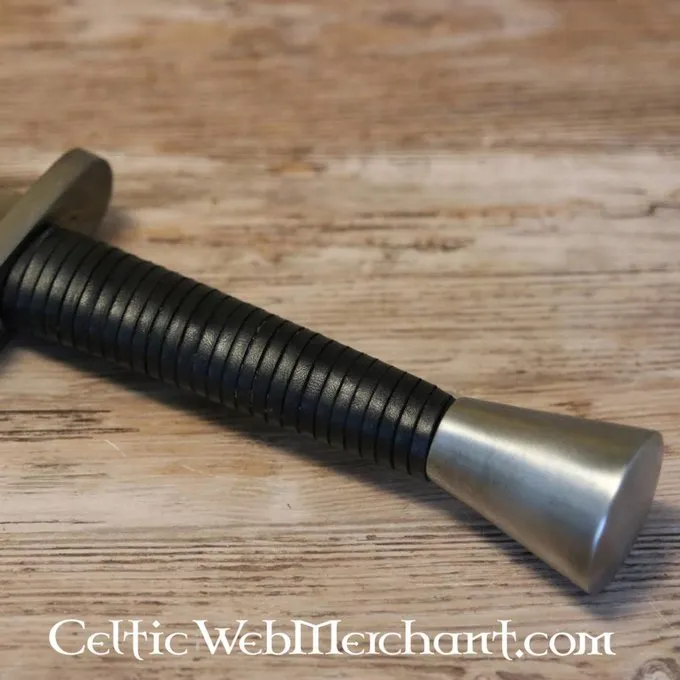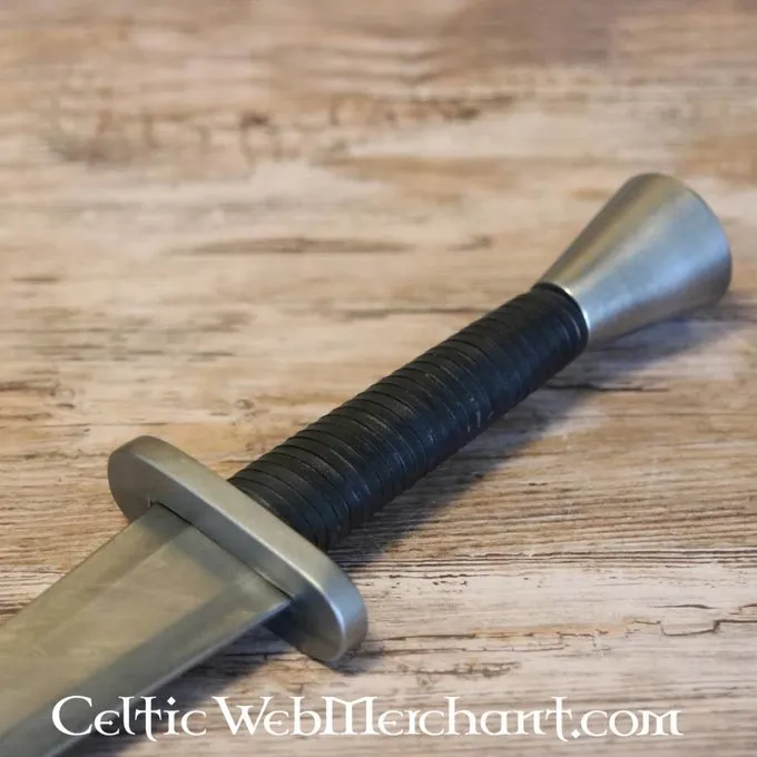 Produktdetails: Länge: 73,8 cm / Klingenlänge: 56 cm / Grifflänge: 8 cm / Gewicht: 1100 g / Saldo Punkt Parierstange: 8 cm / Stahltyp: Federstahl (DIN 54SiCr6) 53 HRC / Schneide: Blunt (3 mm battle-ready) / Tang-Konstruktion: Voll Tang-Konstruktion / Knau