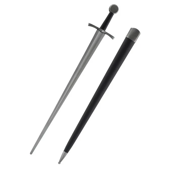 Dieses Schwert ist speziell für Schwertkampfschulen und Reenactment entwickelt. Das Schwert ist kampfbereit und die Klinge ist aus Kohlenstoffstahl mit einer Härte von HRC 50. Seine Länge beträgt 97 cm mit einer Klinge von 79 cm und wiegt ca.. 1 kg.