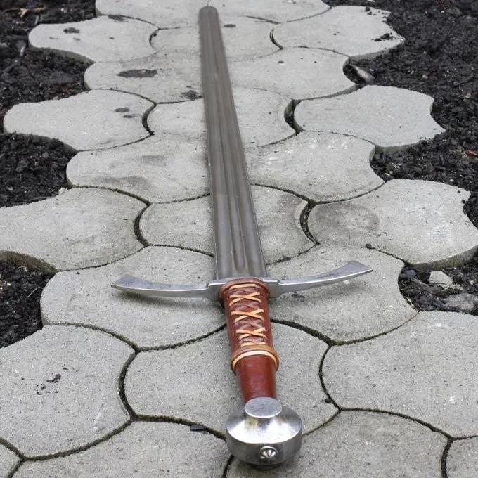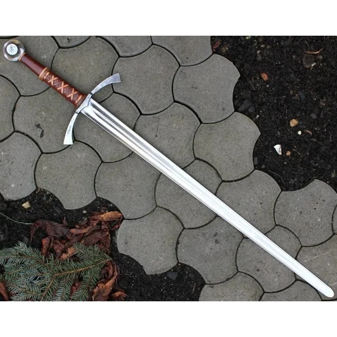 Dieses Schwert zu anderthalb Händen basiert auf mehreren historischen Originalen. Seine Länge beträgt 118,5 cm mit einer Klingenlänge von 89,5 cm und es wiegt 2150 g. Der Griff verleiht dem Schwert einen einzigartigen Charakter. Das Schwert besteht aus Kohlenstoffstahl mit einer Rockwell-Härte von HRC 54 ? 56.