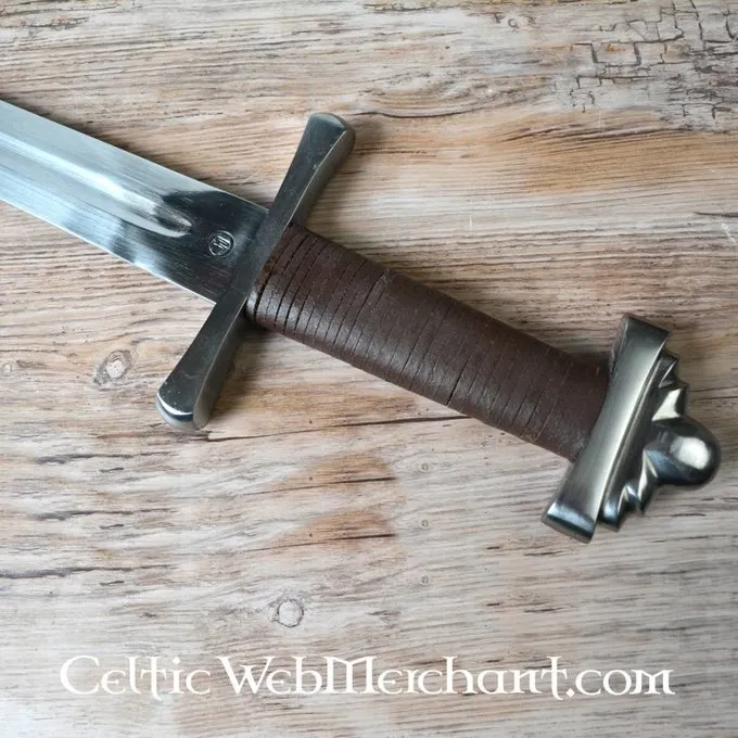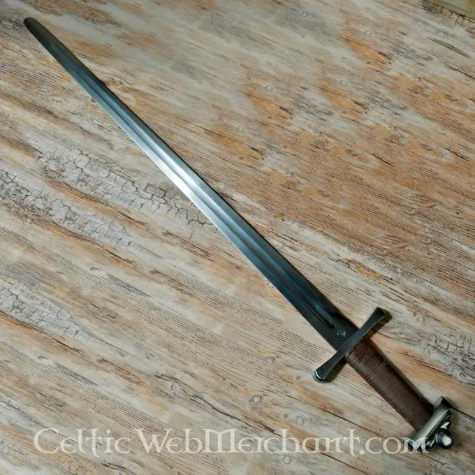 Details: Material: EN45 Federstahl Härte 48-50 HRC / Gesamtlänge: 93,5 cm / Klingenlänge: 75,5 cm / Klingenbreite: 4,2 cm / Knauf: geschraubt / Konstruktion: Fulltang / Blunt 2,5 mm ( Kampf-ready) / Gewicht: 1100 Gramm / Auf der Grundlage eines historisch