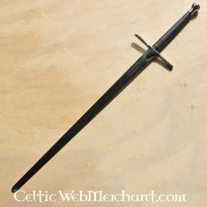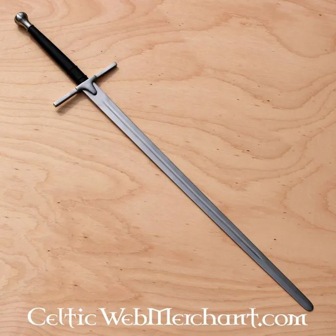 Dieser Renaissance-Bidenhänder ist geeignet für leichte Schwertkämpfe. Seine Länge beträgt 126 cm mit einer Klinge von 90 cm. Es wiegt 2,4 kg. Die Parierstange hat eine Auswölbung an der Klinge Seite das Schwert in einer Scheide zu schützen.