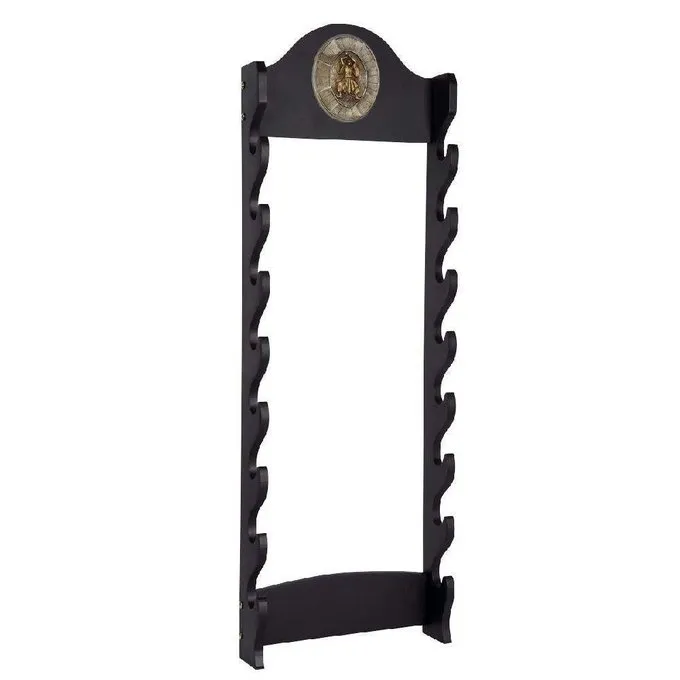 Eine stilvolle Wanddisplay acht Katanas, iaitos zur Anzeige, bokkens oder Wakizashis. Diese Wand-Display ist aus schwarzem gebeizt Holz, ist es 34 cm breit und 100 cm lang.