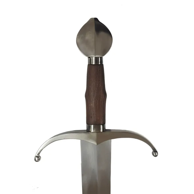 Dieses mittelalterliche Schwert von Windlass Steelcrafts basiert auf historische Schwerter aus dem 15. Jahrhundert mittelalterlichem Frankreich. Joinville war ein Französisch Ritter, die an dem siebten Kreuzzug nahmen. Er wurde für seinen Mut und Hingabe an den König bekannt. Die Geschichte sagt, dass er ein Schwert, wie dies als eine Lanze verwendet, um einen Sarazenen im Heiligen Land zu attackieren. Schwerter wie diese waren sehr beliebt im mittelalterlichen Frankreich und wurden in Schwert und Schild Kombination verwendet. Der Griff dieses Schwertes ist aus Hartholz. Das Schwert ist elegant mit einer großen Waage. Es wird mit einer Lederscheide geliefert. Die halb scharfe Klinge wird mit einer Härte von 48-52 HRC aus gehärtetem 1065 Kohlenstoffstahl geschmiedet. Ein ideales dekoratives Schwert für die Liebhaber der mittelalterlichen Geschichte und für Ritter und mittelalterliches Reenactment und Cosplay der mittelalterlichen Filme. Wenn Sie die Klinge blunten, ist es eine perfekte Kampfschwert für Schwertkampf und ein Trainingsschwert für historischen europäischen Kampfsport.