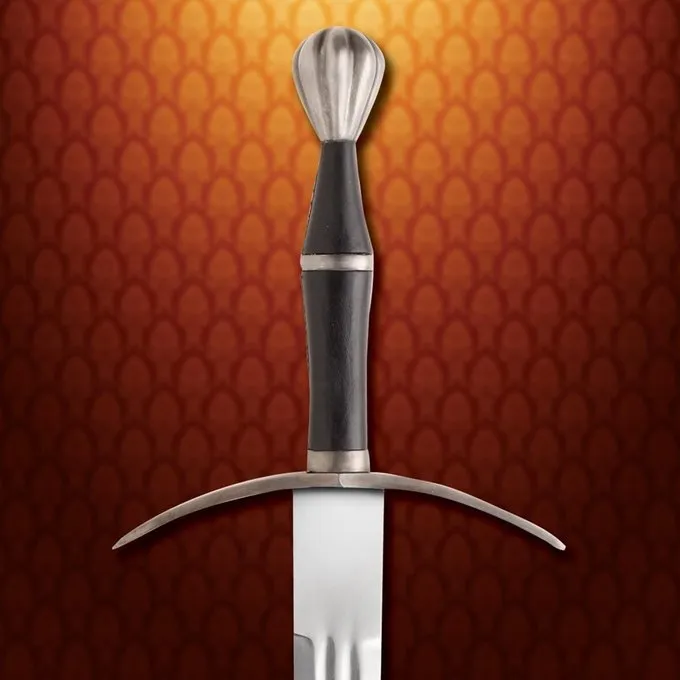 Dieses Replik Schwert auf historische Schwerter aus der Zeit der Schlacht von Bosworth basiert, in 1485. Diese Art von Pallasch auch Bastardschwert genannt wird. Trotz des großen Schwertes, ist es immer noch unglaublich leicht und gut ausbalanciert. Der schöne Griff liegt angenehm in der Hand und ist mit Leder umwickelt. Sie können es als Zweihänder benutzen. Die Klinge ist aus 1065 Kohlenstoffstahl mit einer Härte von 48-52 HRC temperierte geschmiedet und ist halb scharf. Als dekoratives Schwert eine schöne Ergänzung zu Ihrer Sammlung von Replik Schwertern oder zu tragen mit Ihrem mittelalterlichen Kostüme oder für lebendige Geschichte. Wenn Sie die Klinge blunten, ist es ein perfektes Schaukampfschwert für Schwertkampf und Nachstellung Schlachten. Das Schwert ist wie mittelalterliche Lederscheide geliefert.