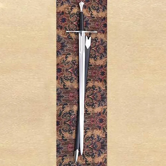 Ein schönes Replik Schwert, machte nach dem historischen Schwert aus dem Mittelalter. Diese mittelalterliche Langschwert oder großes Schwert eignet sich als Zweihänder zu verwenden. Diese Art von Schwert war sehr beliebt im Mittelalter. Es hatte eine sehr lange Länge, so eine große Reichweite und hohe Leistung. Die Fehlschärfe man läßt das Schwert unter der Wache halten, so dass das Schwert feste und präzise thrusted werden kann. Dieses Schwert ist aus 1085 Kohlenstoffstahl hergestellt und auf eine Härte von 52 HRC. Die Klinge ist halb scharf. Dies ist ein schönes Meisterwerk als dekoratives Schwert zu verwenden, oder Sie können die Klinge für den Einsatz als Kampfschwert für Schwert Ausbildung blunten. Das Schwert ist mit einer Lederscheide geliefert.