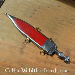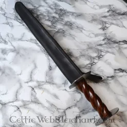 Material: 1055 Kohlenstoffstahl temperiert / Rand: halb scharf (0,5 mm) / Länge: 45 cm / Klingenlänge: 30 cm / Breite: 4,45 cm / Stahldicke: 4,2 mm / Länge Parierstange: 10,8 cm / Gewicht: 508 Gramm / Geliefert mit Scheide / Auf der Grundlage eines histor