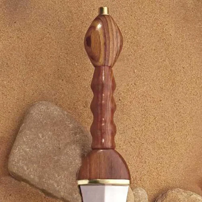 Eine schöne pugio mit Scheide von Windlass Steelcrafts, basiert auf einem Original im Britischen Museum. Der pugio war ein Dolch, dass die römischen Legionäre für den Nahkampf verwendet. Diese Arten von römischen Dolche wurden in der Regel nicht von Zivilisten getragen, aber Händler und andere Reisende hat einen pugio auf der Straße tragen. Auf diese Weise konnten sie sich gegen Barbaren an den Rändern des Römischen Reiches oder gegen Räuber schützen. Diese pugio hat einen Holzgriff und die Scheide mit Messingbeschlägen und Ringen verziert ist es am Gürtel zu hängen. Die Klinge ist aus gehärtetem 1055 Kohlenstoffstahl mit einer Härte von 48-52 HRC. Perfekt für Nachstellung eines römischen Legionärs, einem römischen Kostüm oder für den Sammler der römischen Waffen. Wenn Sie die pugio blunten, ist es für Nachstellung Schlachten geeignet.
